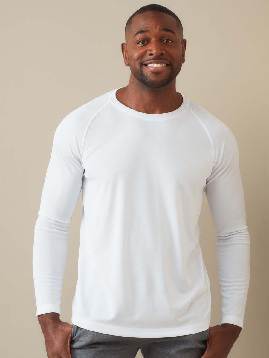 Modern and stretchy long sleeve sports T-shirt for men made of quick-drying, breathable mesh-material. Contrast neck tape, decorative flatlock seams and excellent freedom of movement. Previously known as Active 140 Long Sleeve.