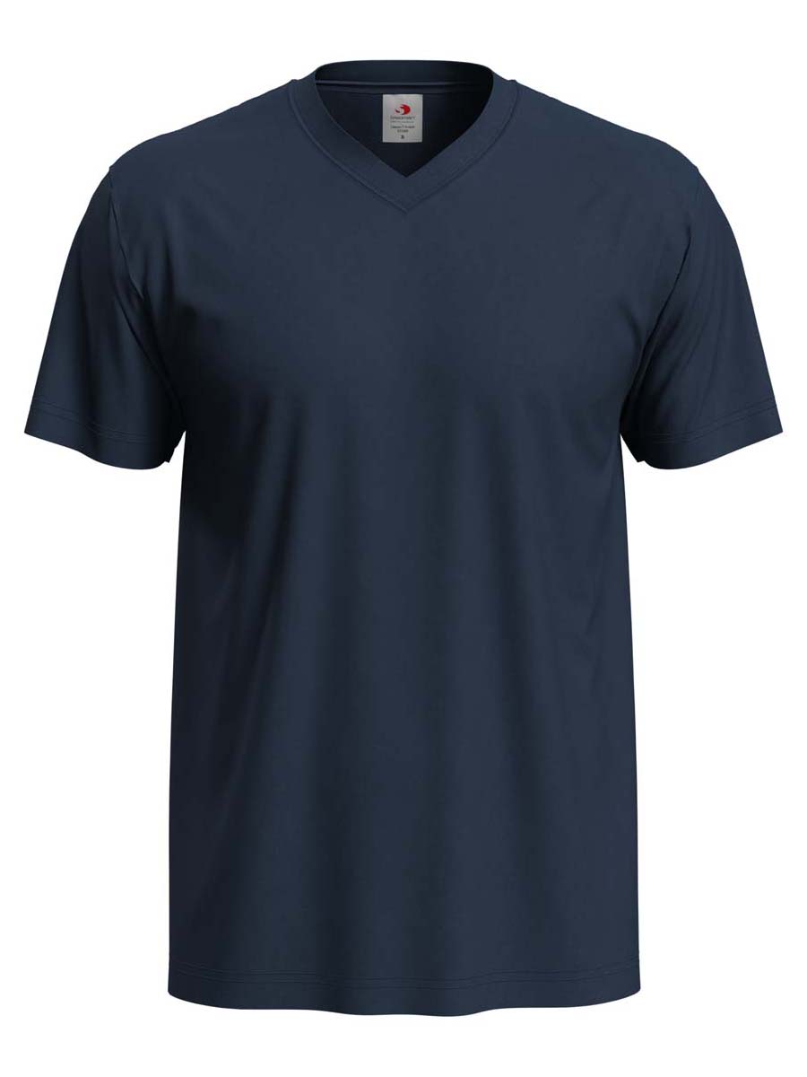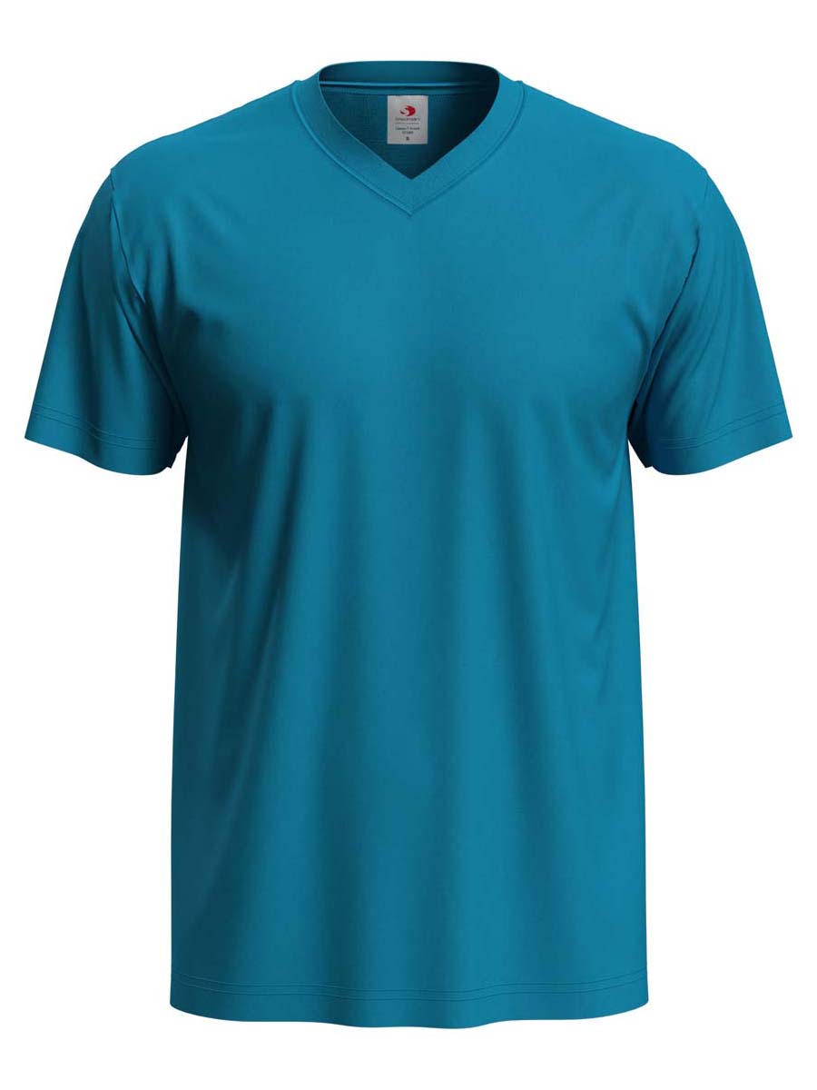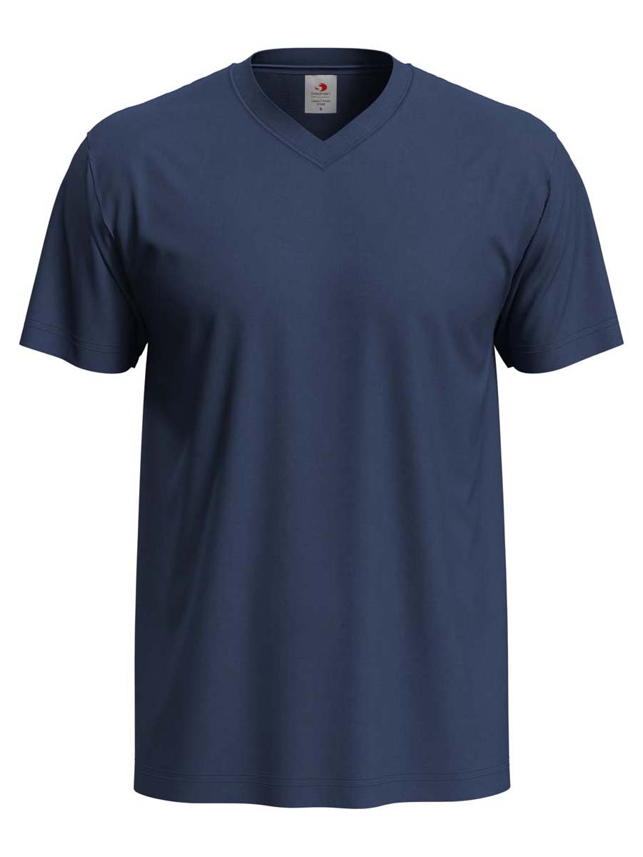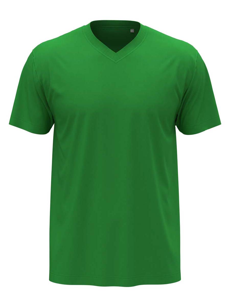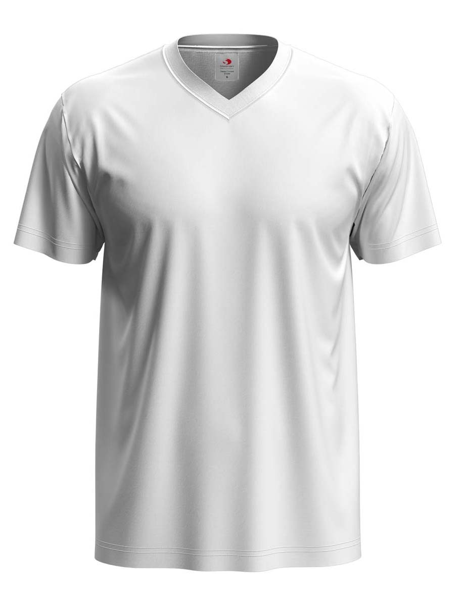 Classic V-neck style for men. Soft, without side seams and made of durable single jersey cotton.