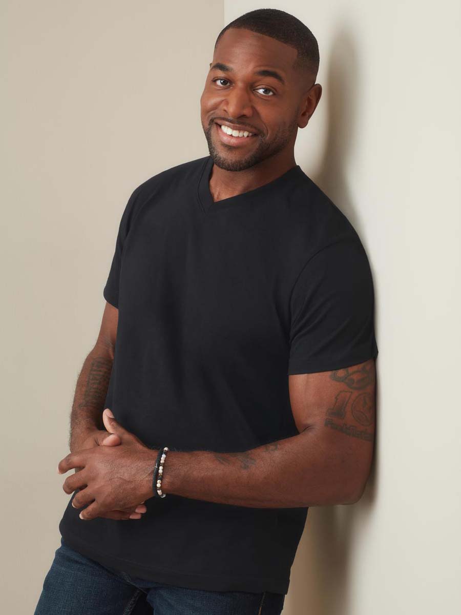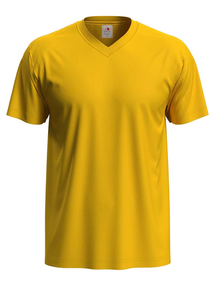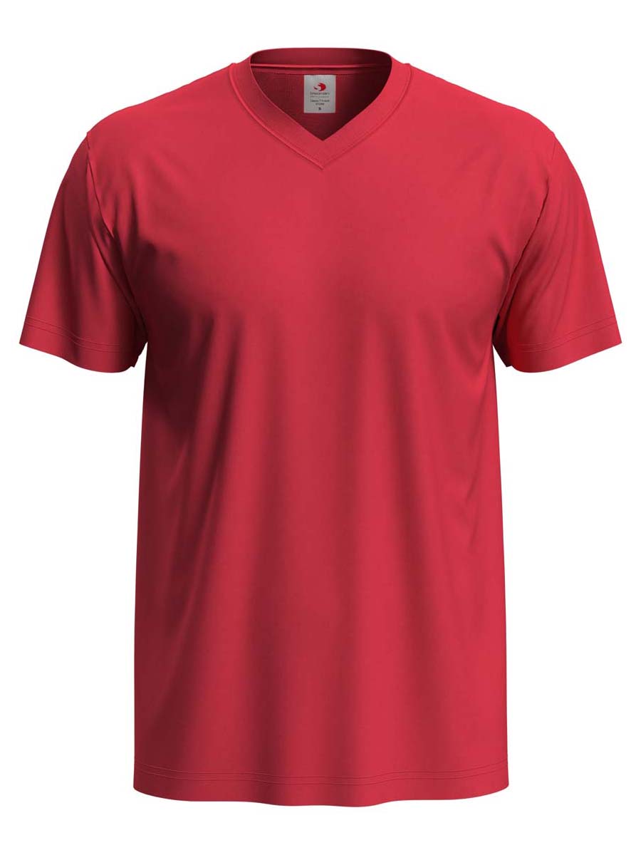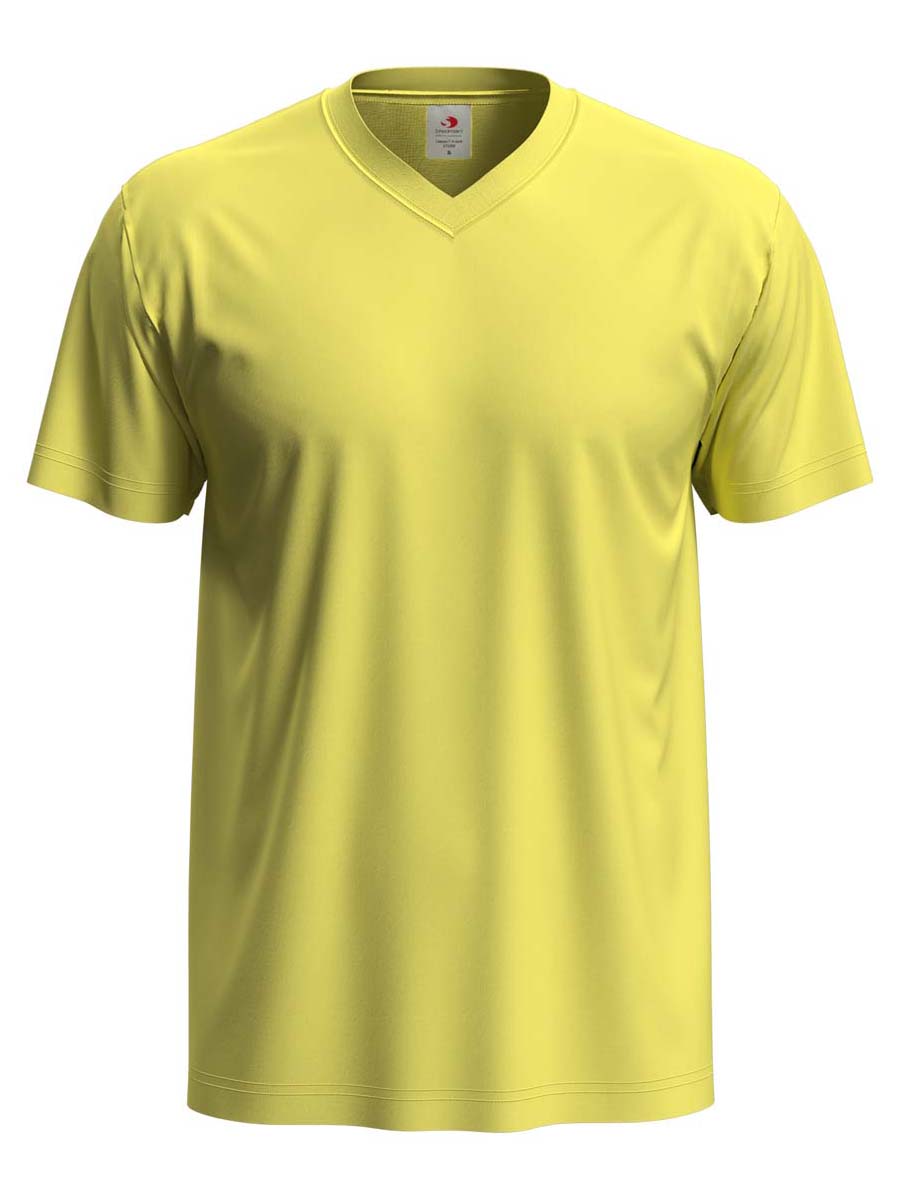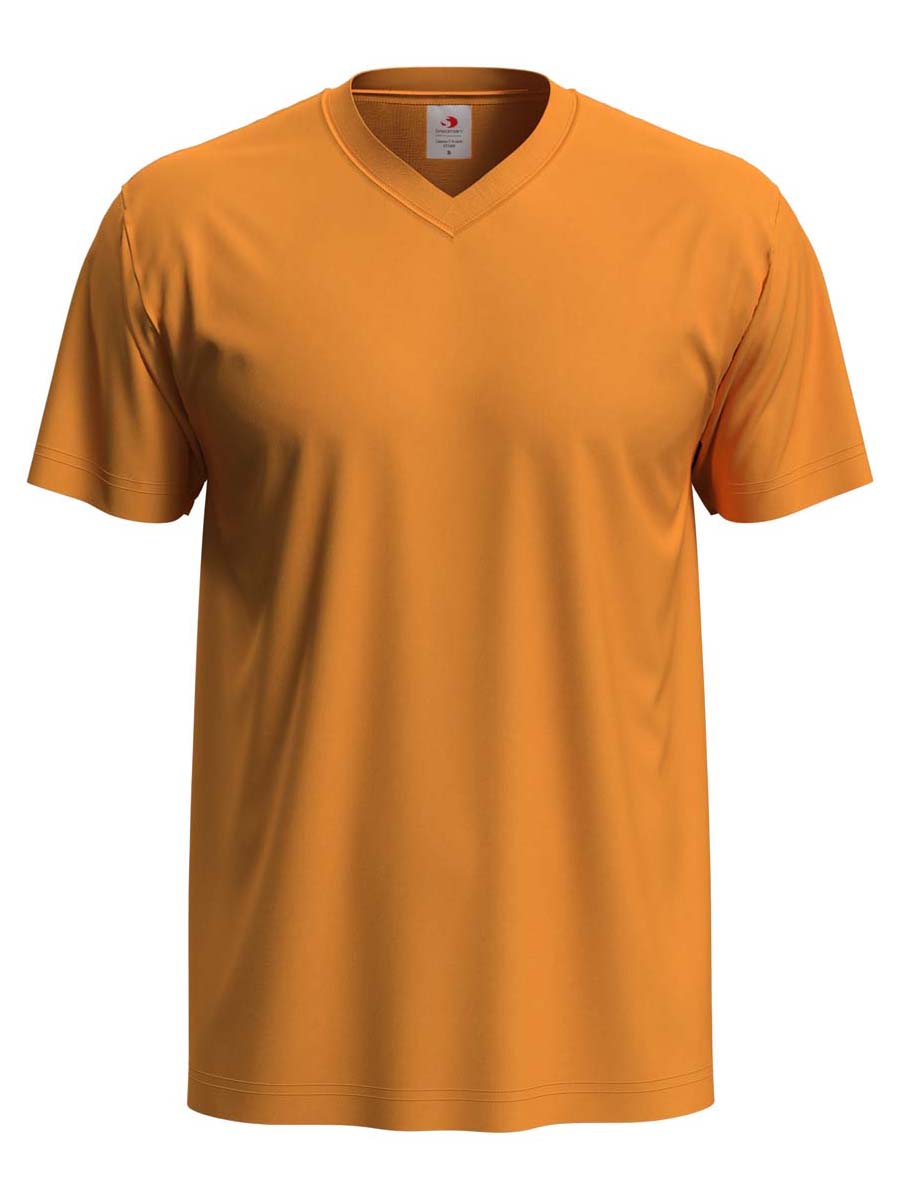 Classic V-neck style for men. Soft, without side seams and made of durable single jersey cotton.
