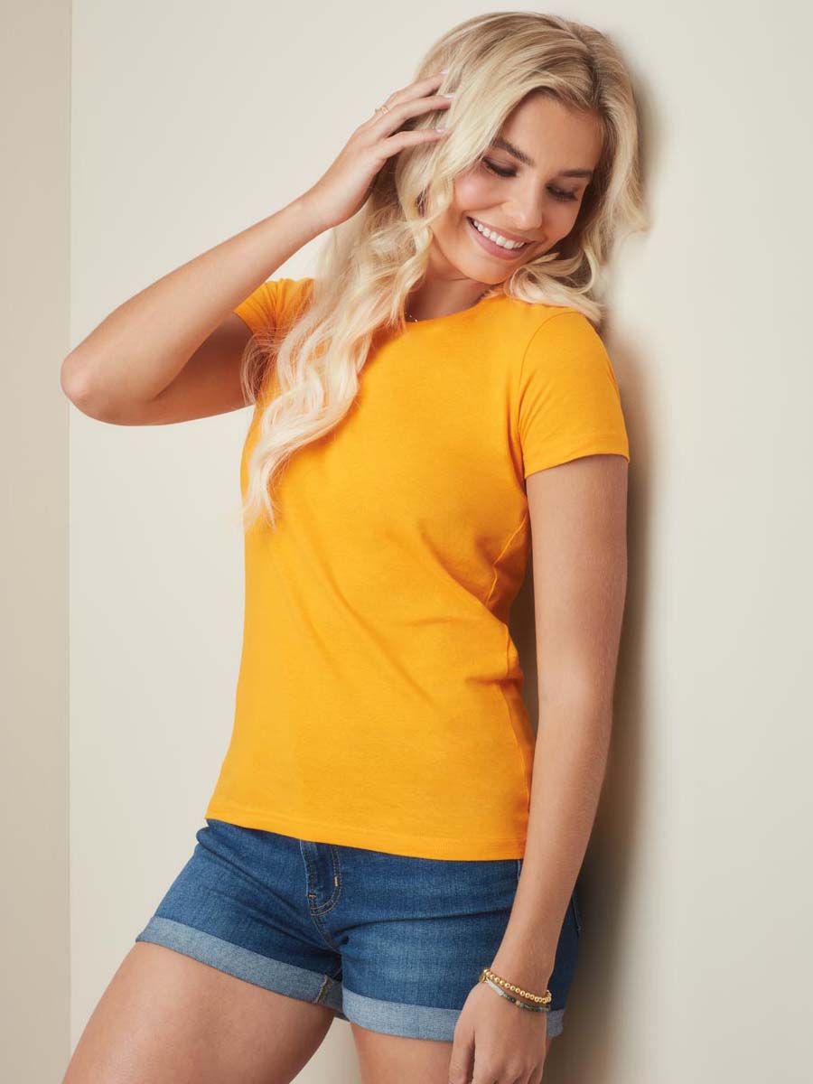 Classic bestseller: soft T-shirt for women, with side seams made of durable single jersey cotton.